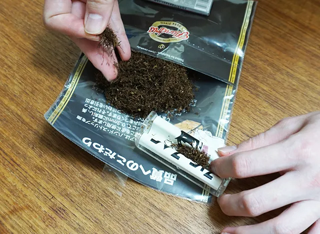 また、0.3mmに栽刻したたばこ葉を何度もふるいにかけて、細かい粉や茎を取り除いてブレンドしているそうです。